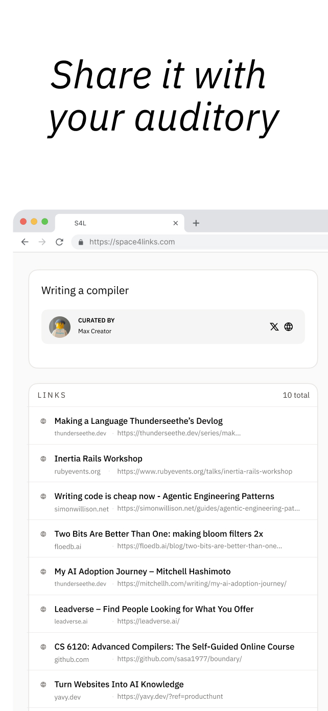 Save links on the go, build your personal collection, and share it with your audience — now available as a companion app for iPhone.